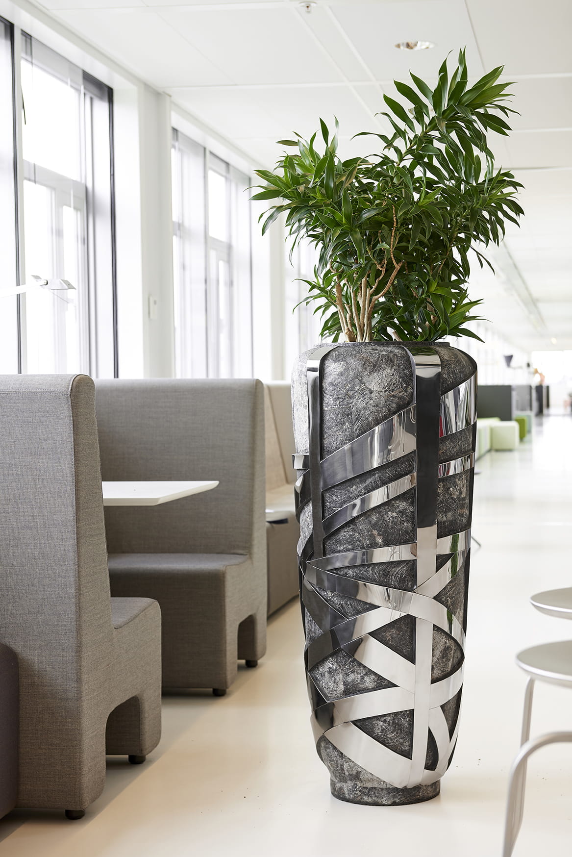 Jednym z najprostszych sposobów na wprowadzenie zieleni zarówno do przestrzeni prywatnych, jak i miejsc publicznych, jest wykorzystanie donic wypełnionych kwiatami. Ekskluzywne, ręcznie wykonane donice z naturalnych materiałów, takich jak kora drzew, kamień, czy drewno, stanowią dopełnienie projektowanych wnętrz przez Garden Spot oraz pełnią funkcję małych dzieł współczesnej sztuki użytkowej.